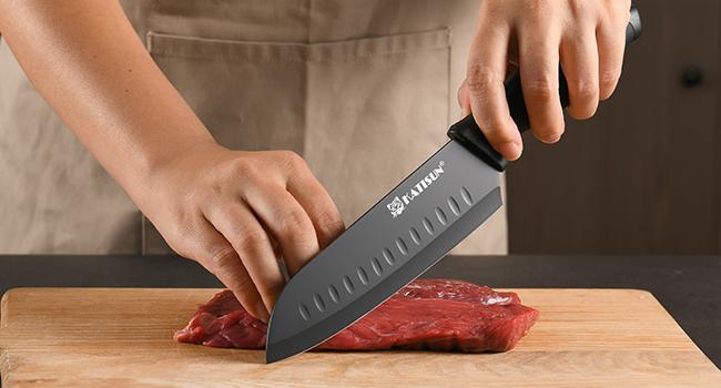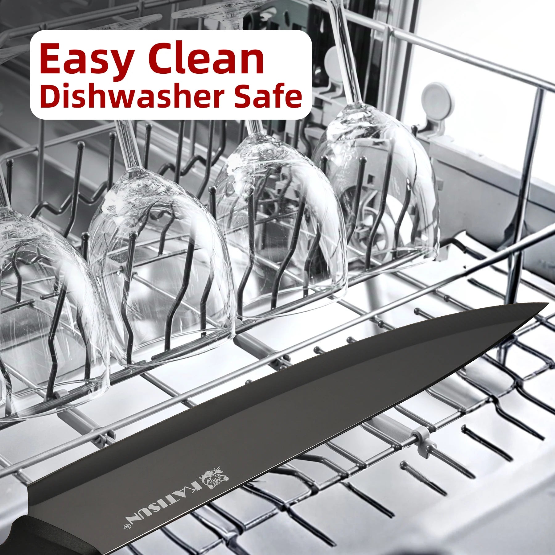 15 Pieces Carbon Steel Kitchen Knife Block Set, Built-in Knife Sharpener