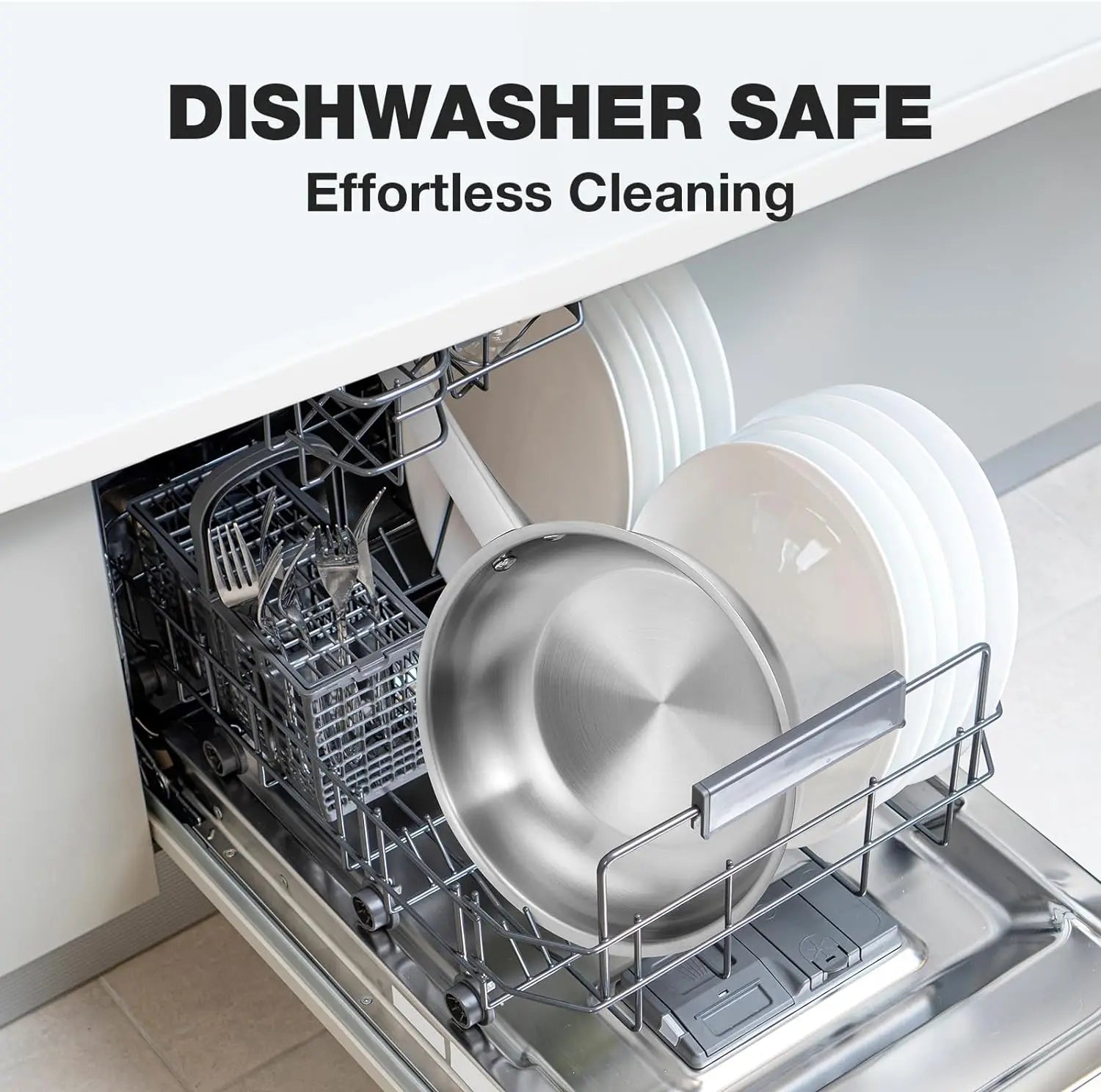 Stainless Steel Frying Pan With Tri-ply Bottom - Excellent Heat conduction PFAS-Free