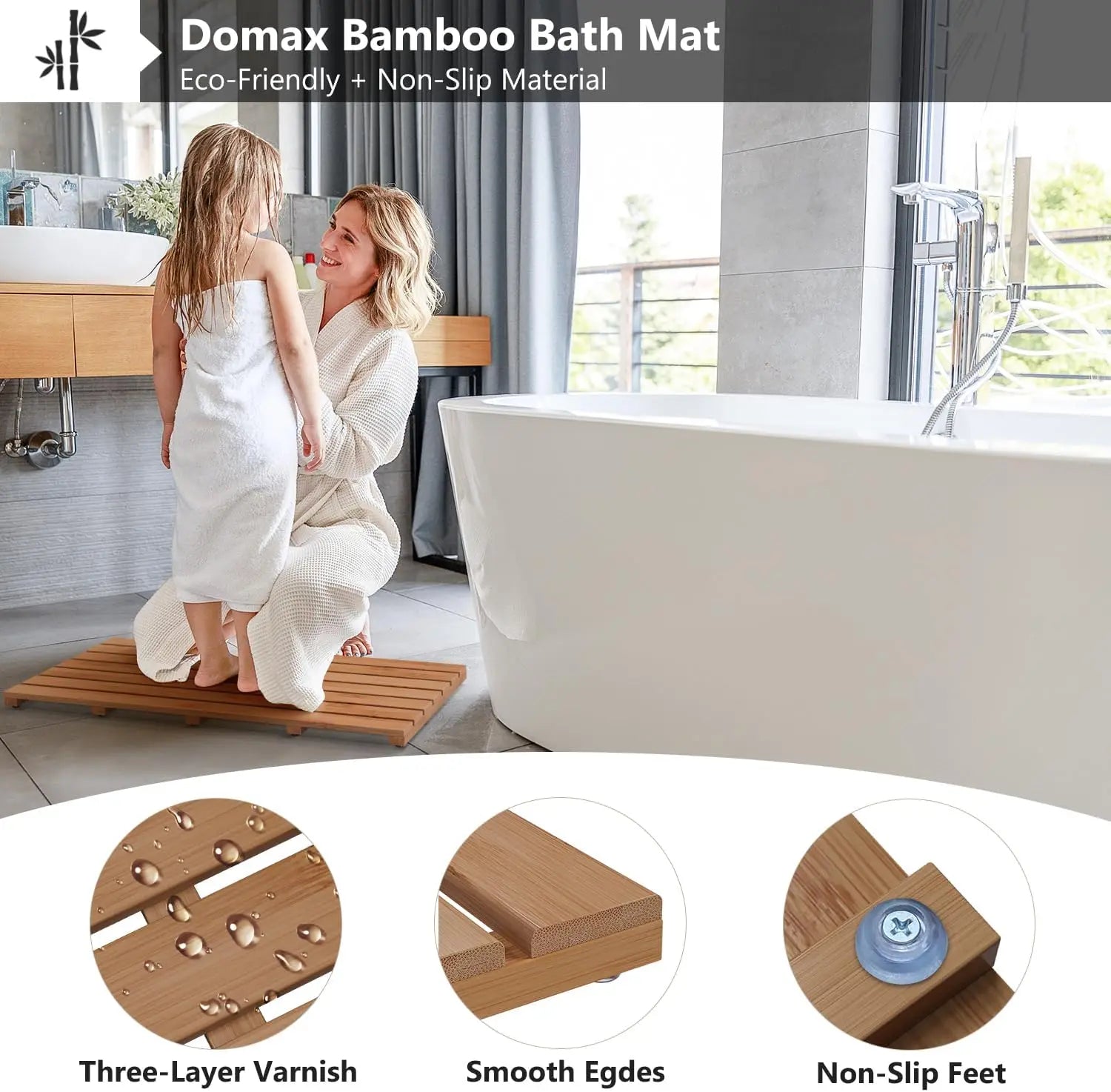 Waterproof Wooden Bamboo Shower Mat
